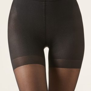 15 denier sheer tights with opaque high leg waistband that flattens the tummy. Invisible stitching and cotton gusset.