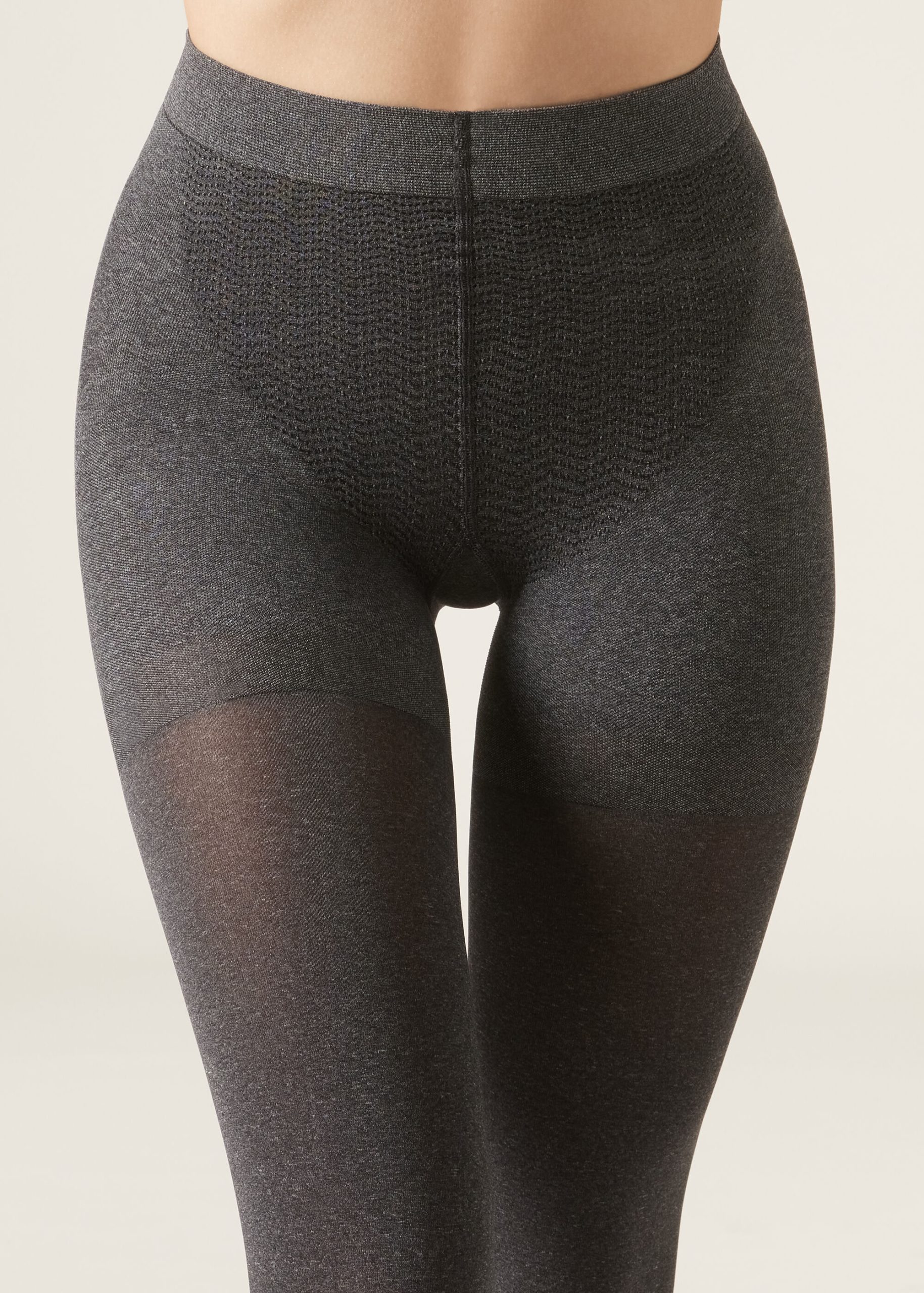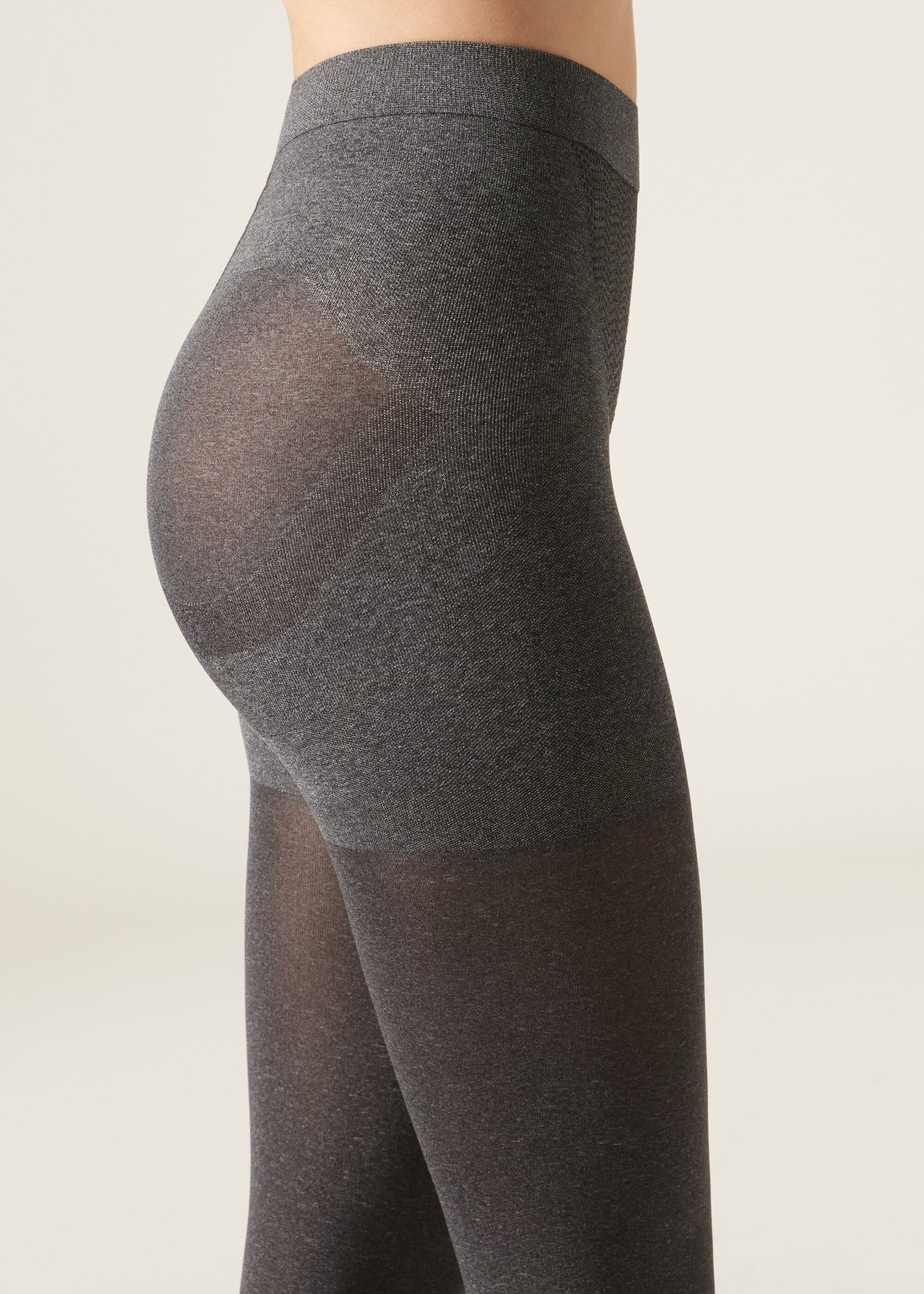 80 denier super opaque tights with lightly graduated compression. The shaping line is designed to sculpt the silhouette. Thanks to the particular characteristics of the material and the construction, the total shaper effect contours the stomach, hips and buttocks. Reinforced top and toes, flat seams, cotton gusset.