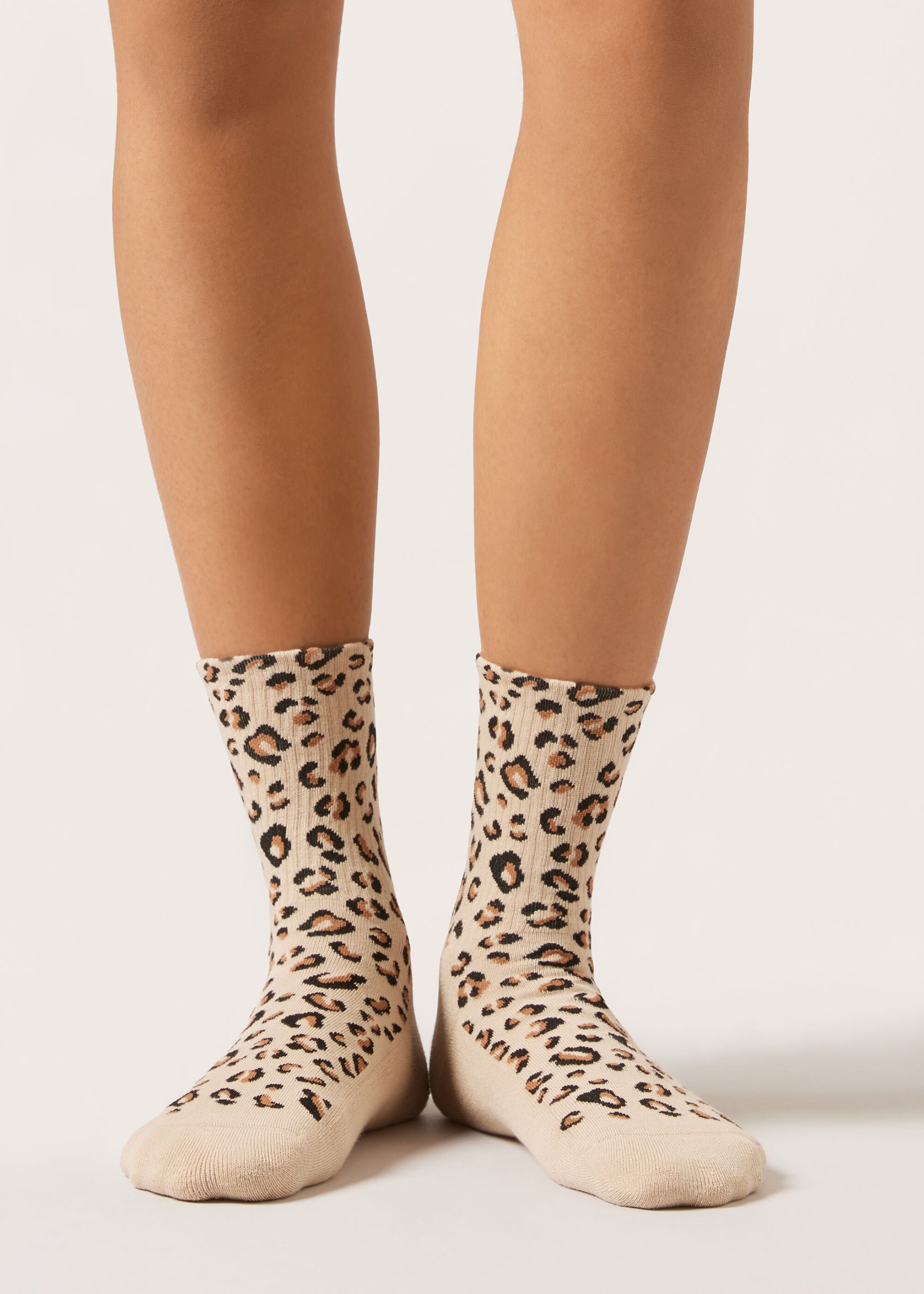 Women’s short socks in breathable cotton, they are the ideal to combine comfort and style. The sporty leg offers a dynamic fit, while the animal print adds a bold touch to your look.
