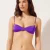 Unpadded balconette swimsuit top with underwire, featuring a minimal fit that exalts the silhouette with a touch of sensuality and refinement. The bright silk-effect fabric embellished by elegant golden details radiates a sophisticated sensation of discrete luxury. Adjustable shoulder straps and string tie fastening complete the design for this summer look that does not pass by unnoticed.