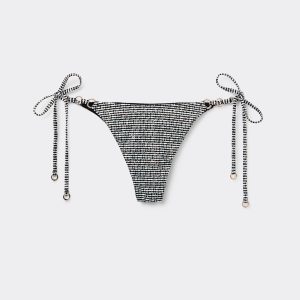 Brazilian cut bikini bottom with side ties. The style features a black and white toned pattern embellished with a coated effect. Fully lined with invisible seams.