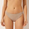 Brazilian String Swimsuit Bottoms Golden Glitter