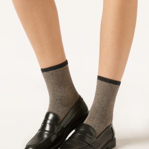 Women’s non-elastic short socks in soft cashmere with comfort trim embellished with glitter. Perfect for total comfort without sacrificing style, they offer a luxurious and warm feeling ideal for winter, adding a touch of elegance to your everyday wardrobe.