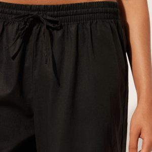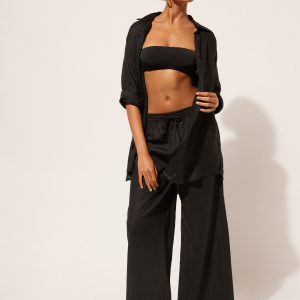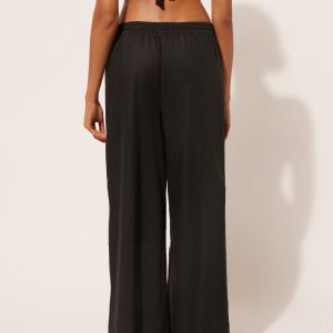 Cotton and linen pants with comfortable drawstring at the waistband. Palazzo style. Available in different colors that match the beachwear collection.