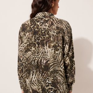Cropped button-down shirt in animal-print viscose, ideal as a cover up or to finish off a summer outfit. Featuring buttons, a shirt collar and long sleeves, it pairs perfectly with 0BDP148 pants.