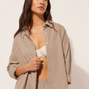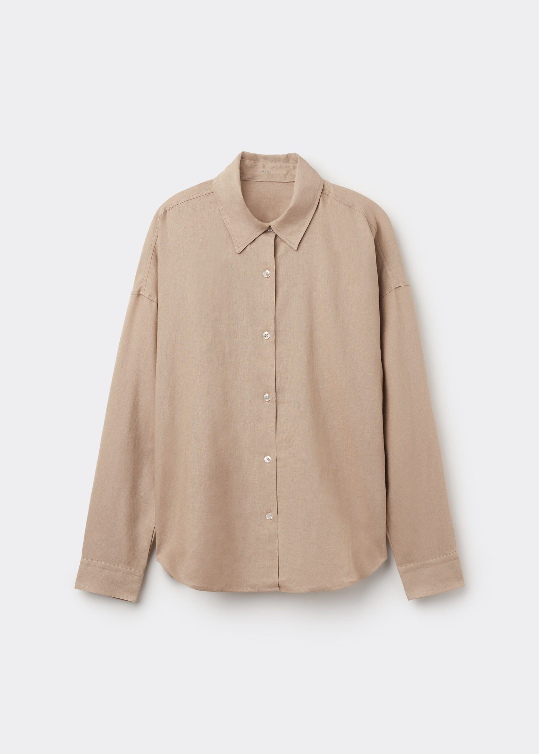 Cropped button-down shirt in linen and viscose, perfect for those who love natural fibers, with shirt collar and long sleeves. With a comfortable fit and a fluid design, it is perfect for pairing with the shorts or pants from the same series.