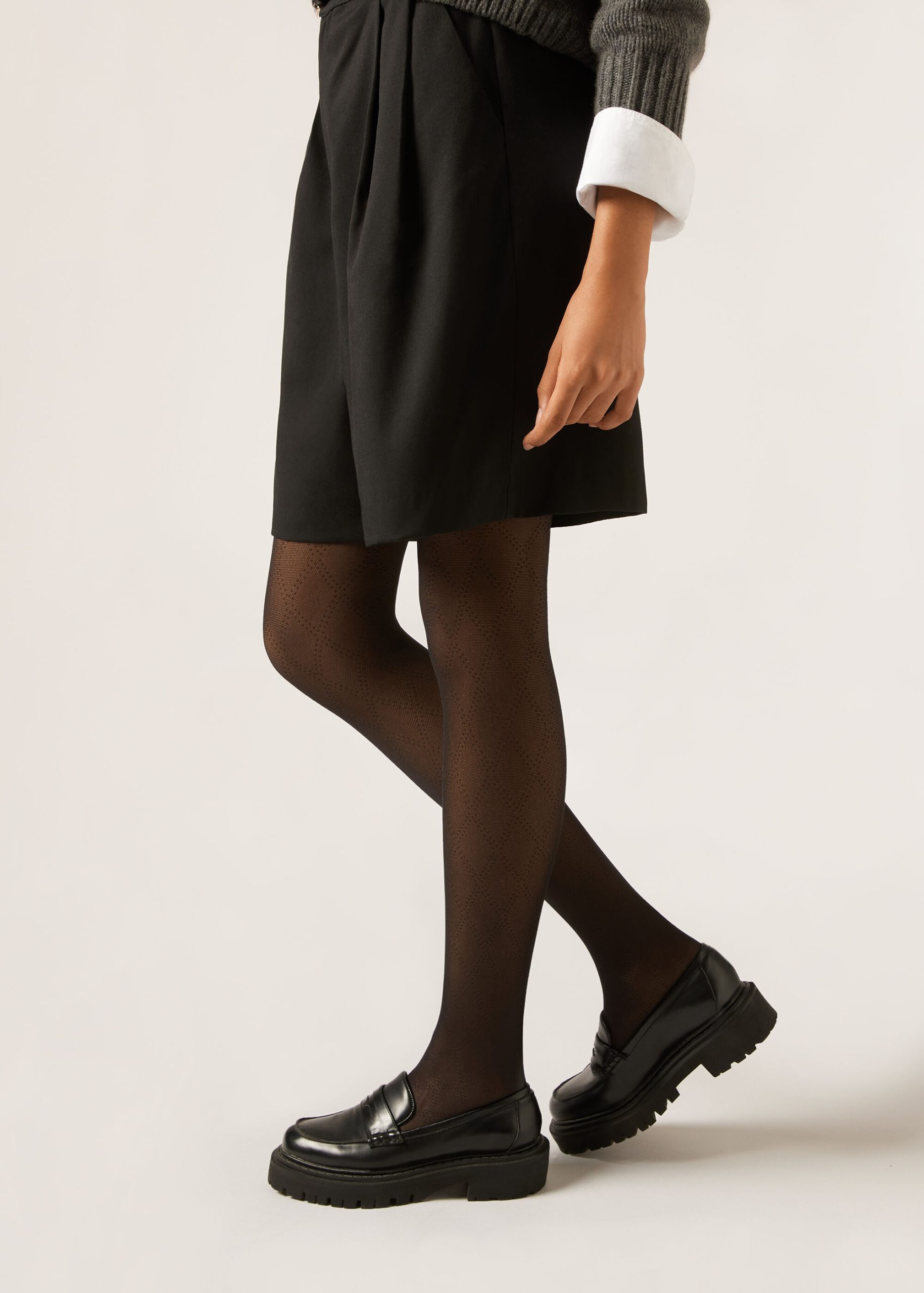 Seventy denier mesh tights with a diamond and dot pattern, featuring a soft waistband for maximum comfort and cotton gusset.