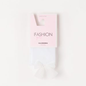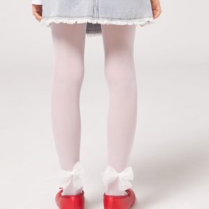 Girls’ 30 denier tulle tights featuring an elegant bow appliqué.