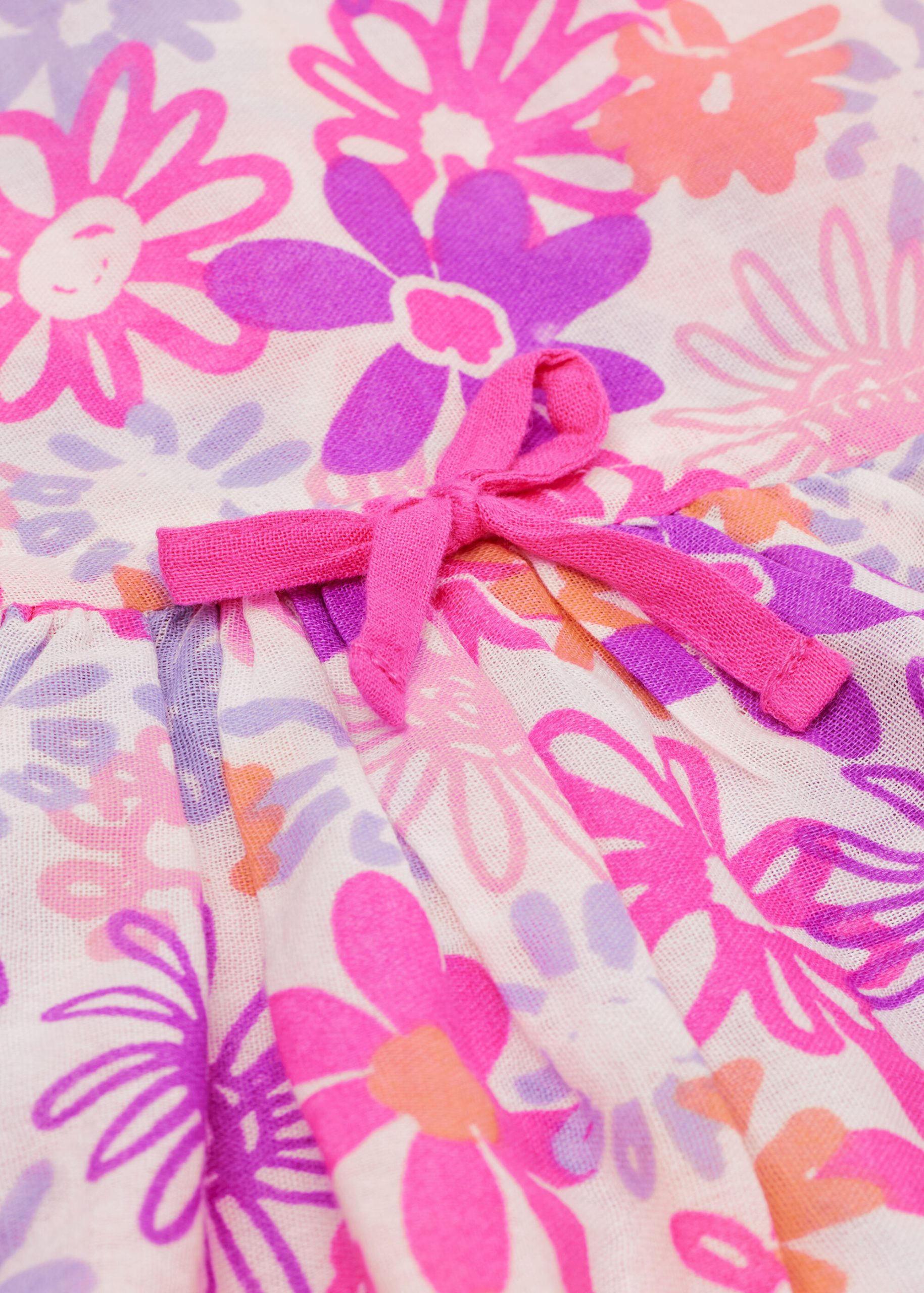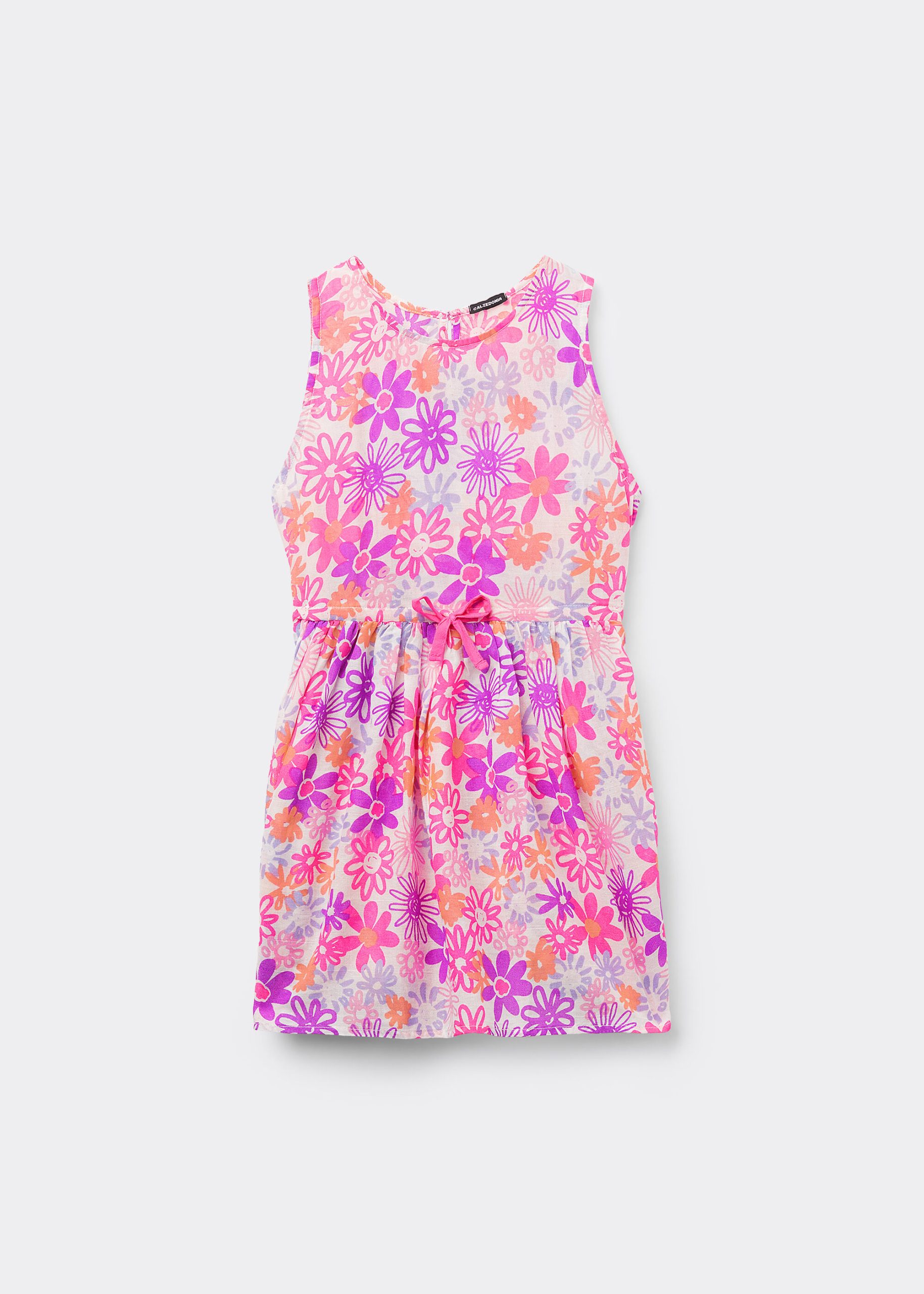 Girls’ dress in soft cotton, perfect as a cover-up. Lightweight and cool, it features a delicate colorful pattern that adds a touch of sweetness. Ideal for days at the beach or in the pool, it offers comfort and freedom of movement.
