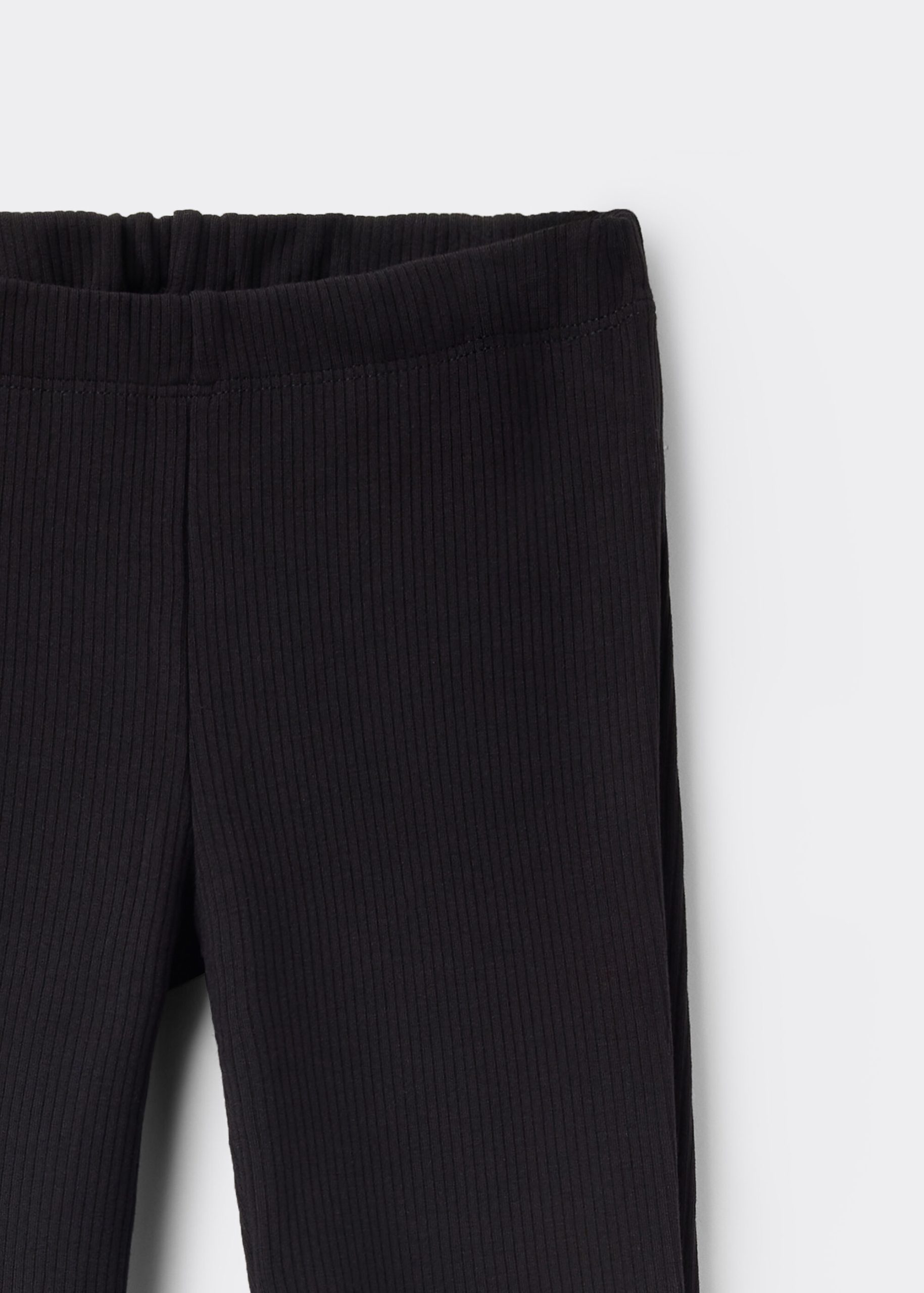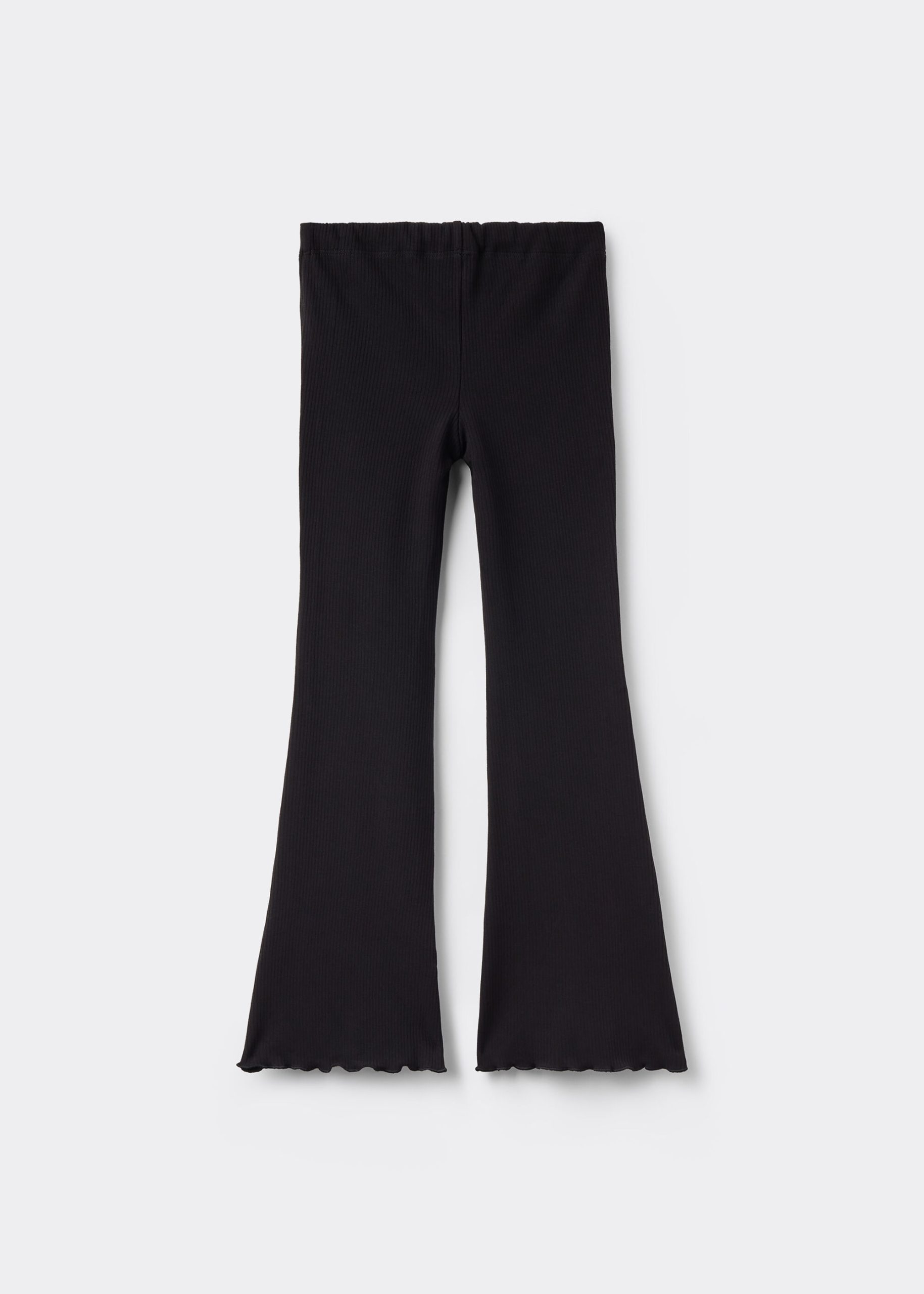 Girls’ flared leggings in ribbed thermal cotton, warm and comfortable. Lettuce leaf trim at the hem and practical adjustable inner elastic at the waist for a perfect fit.