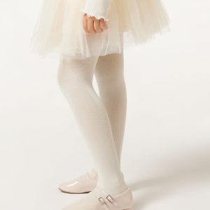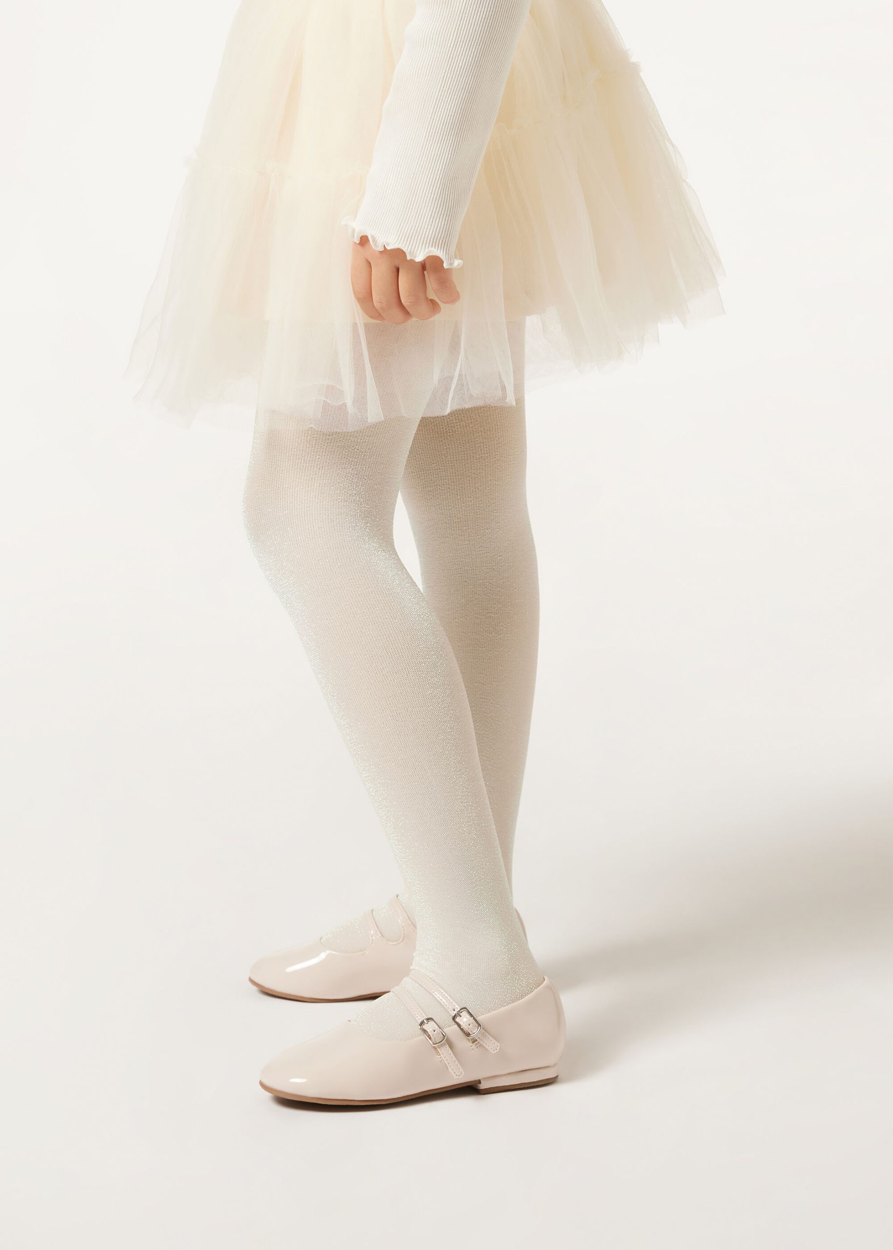 Girls’ opaque 70 denier tights featuring shiny colored glitter.