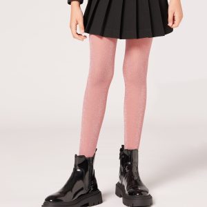 Girls’ opaque 70 denier tights featuring shiny colored glitter.