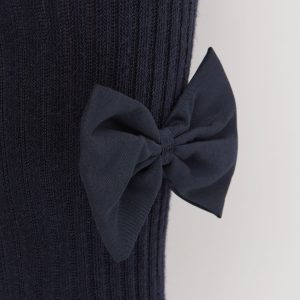 Girls’ soft cotton tights featuring a ribbed construction and embellished with an elegant tone on tone bow.