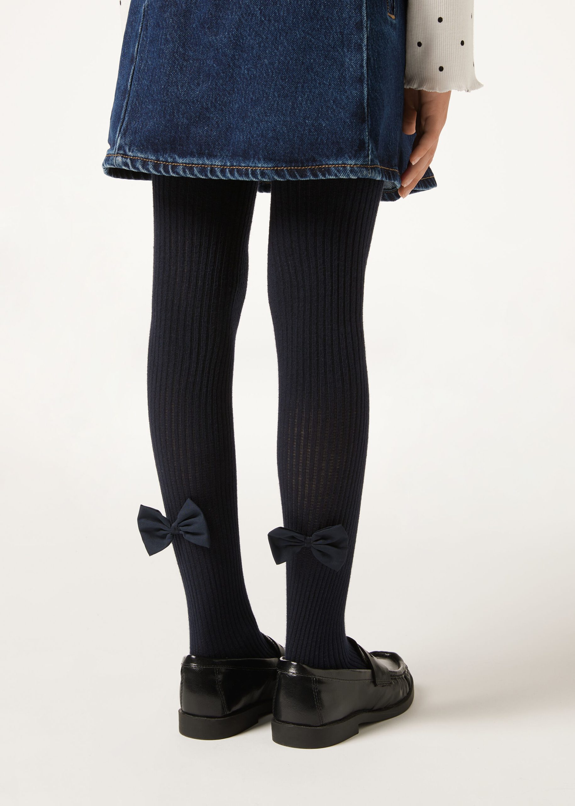 Girls’ soft cotton tights featuring a ribbed construction and embellished with an elegant tone on tone bow.