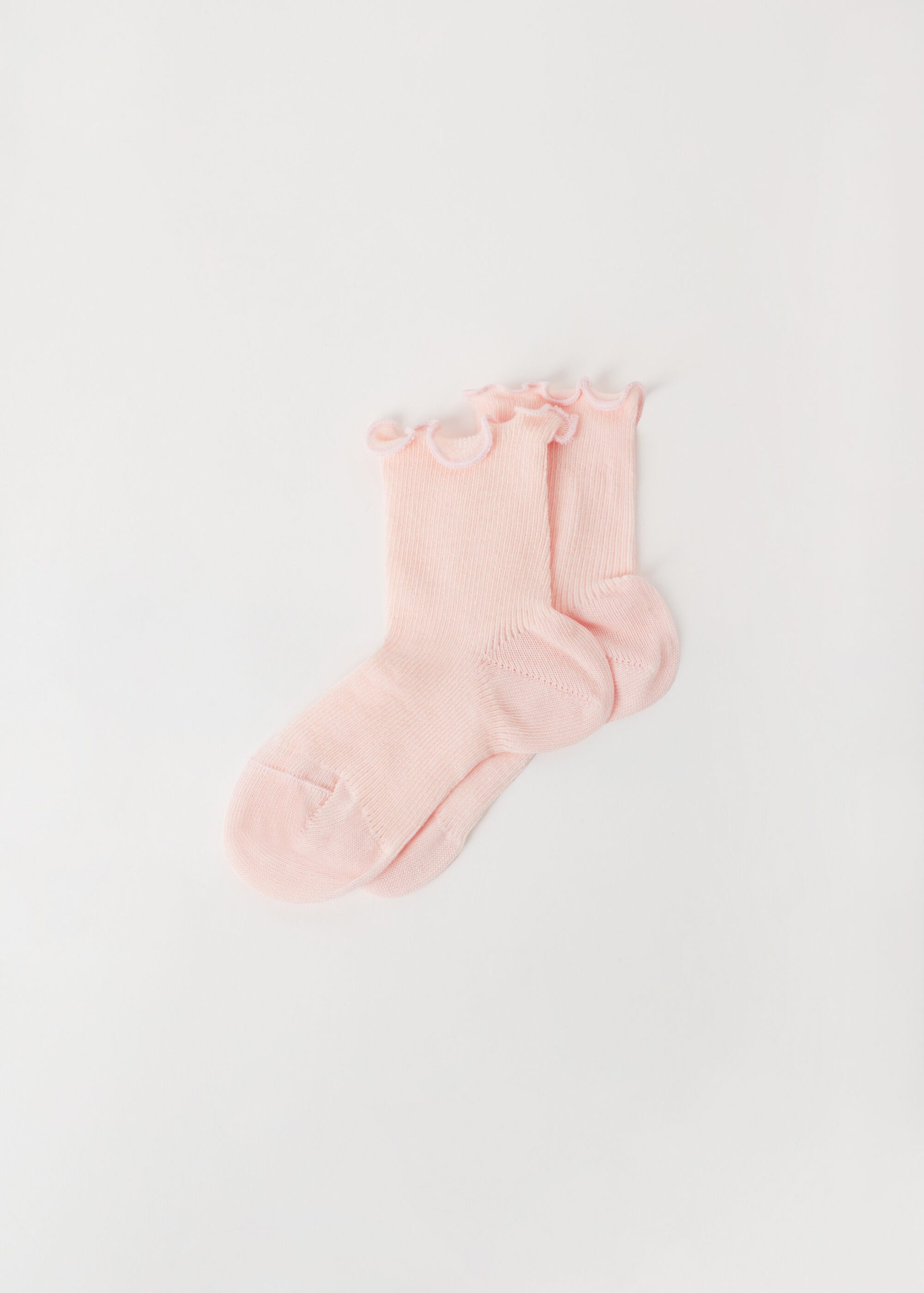 Girls’ short socks in soft cotton, featuring a ribbed construction and romantic scalloped border.