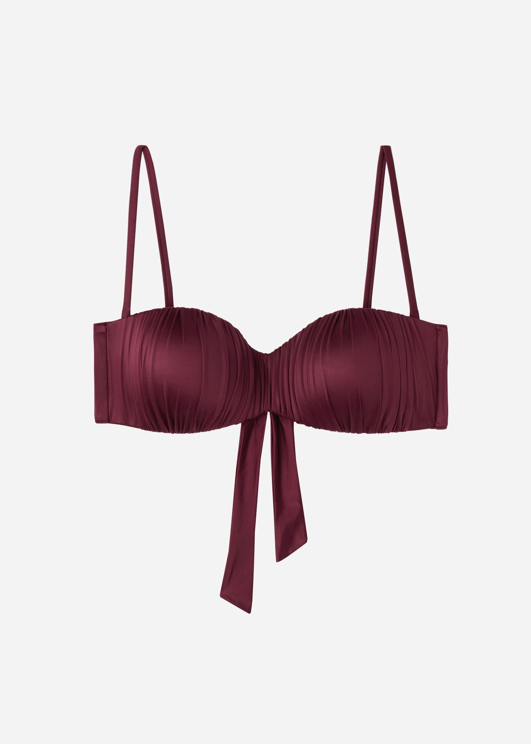 Graduated Padded Bandeau Swimsuit Top Shiny Satin