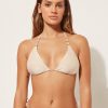 Push-up bikini top with graduated padding and underwire for more volume at the bust. Soft fabric with shiny lamé thread embellished with nickel free small gold rings. Adjustable straps and back hook closure.