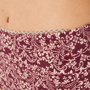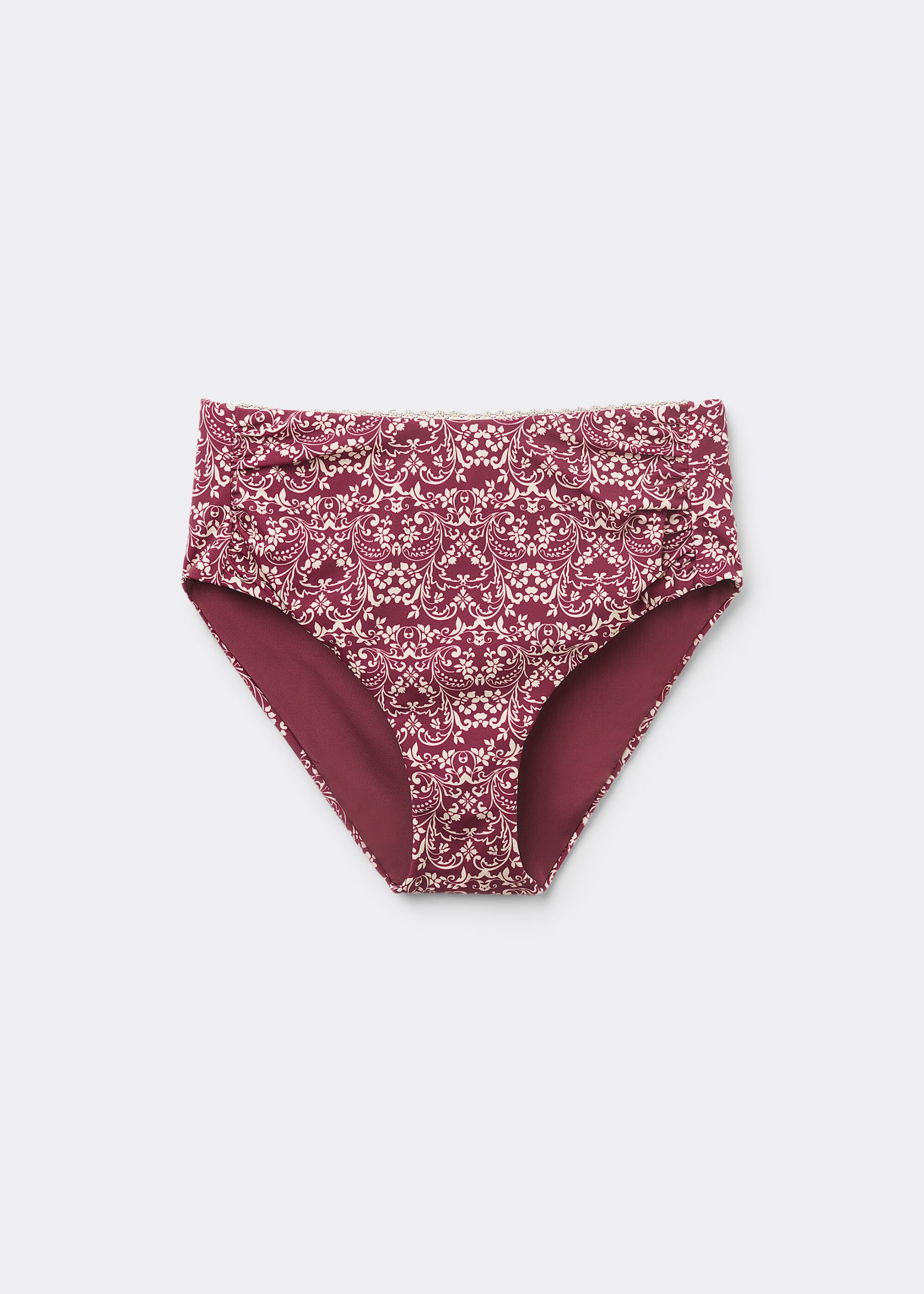 Bikini bottoms with a high waist with a shaping effect on the abdomen, guaranteed by a special tulle at the front. An elegant floral pattern with shades of burgundy that creates a refined and natural look. Fully lined with invisible seams.
