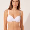 Push-up bikini top with lightly padded cups and underwire to highlight the décolleté. The special bow detail at the décolleté helps to adjust the push-up effect. The extremely soft fabric makes it pleasant to wear, offering a light and comfortable feel on the skin. Adjustable straps. Back closure with two hook-and-eye closures to improve the fit of the underband.