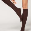 Women’s smooth long socks with a warm and soft cashmere interior.