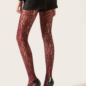 Women’s fishnet tights embellished with an opaque floral motif with a macramé lace effect.