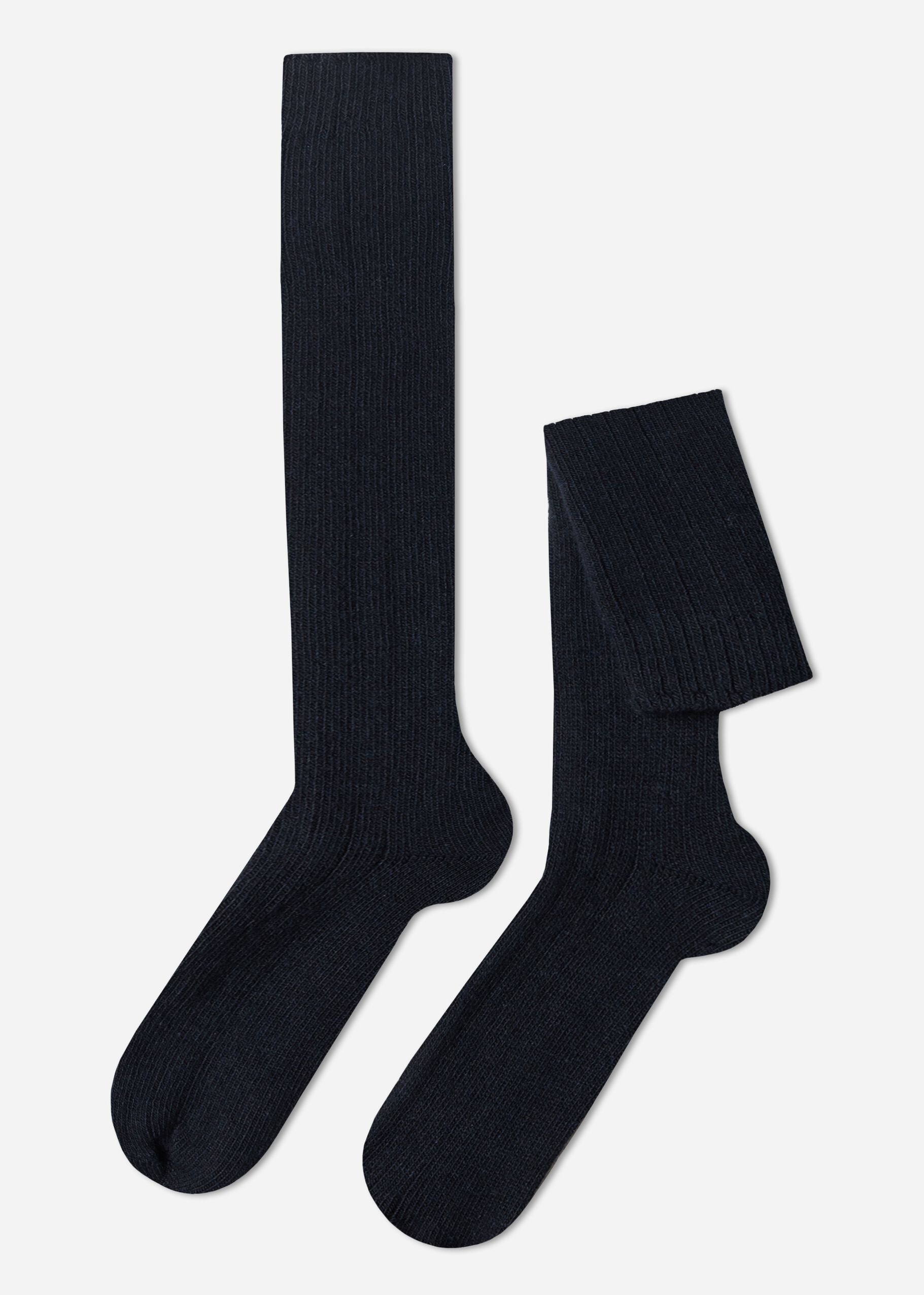 Men’s Ribbed Wool and Cashmere Long Socks