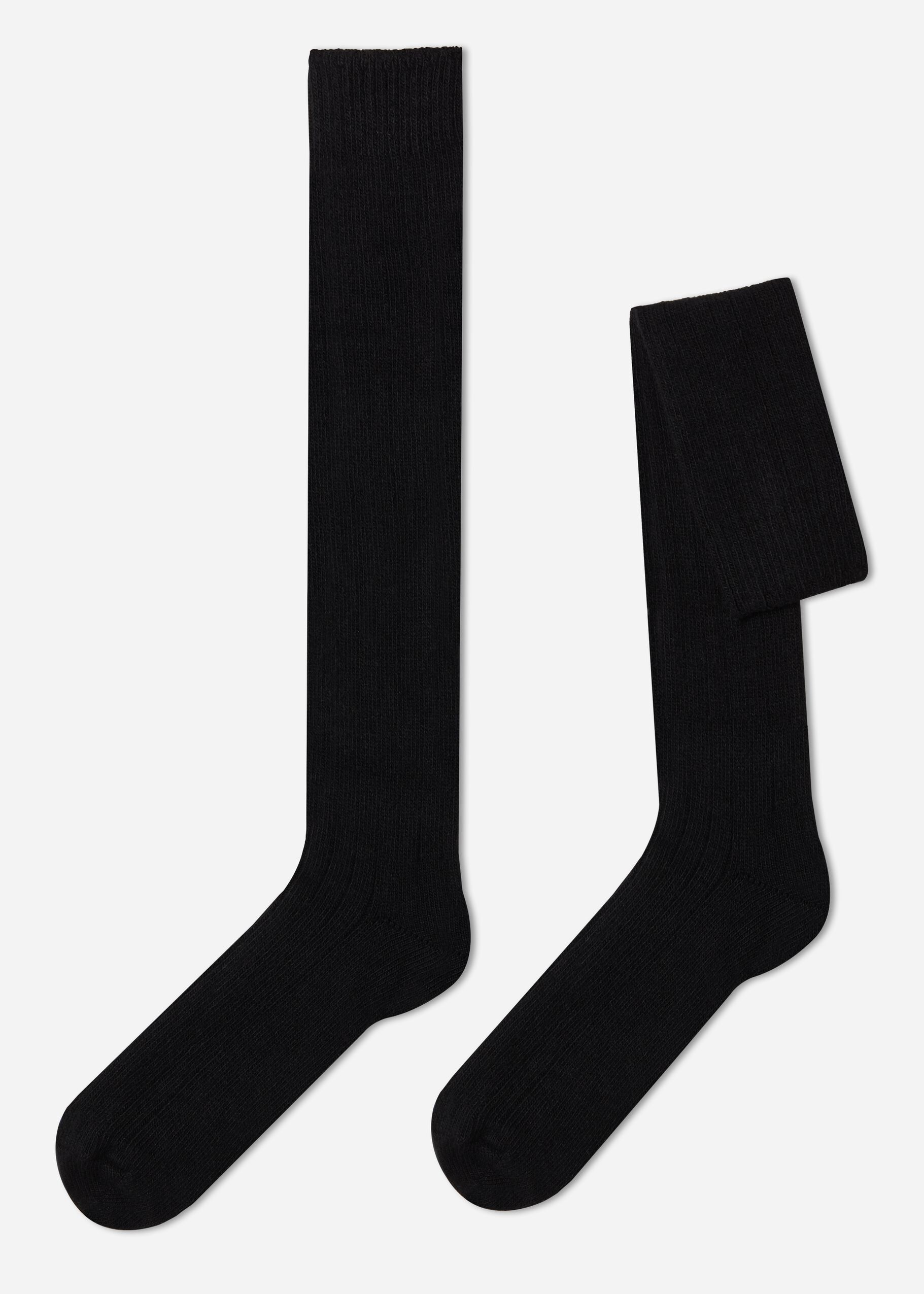 Men’s long ribbed socks with wool and cashmere, a warm and comfortable fabric.