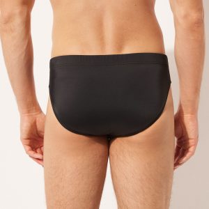 Men’s swimming shorts in microfiber with slightly high sides and regular back coverage. Covered elastic waistband and adjustable external drawstring. Interior front lining.