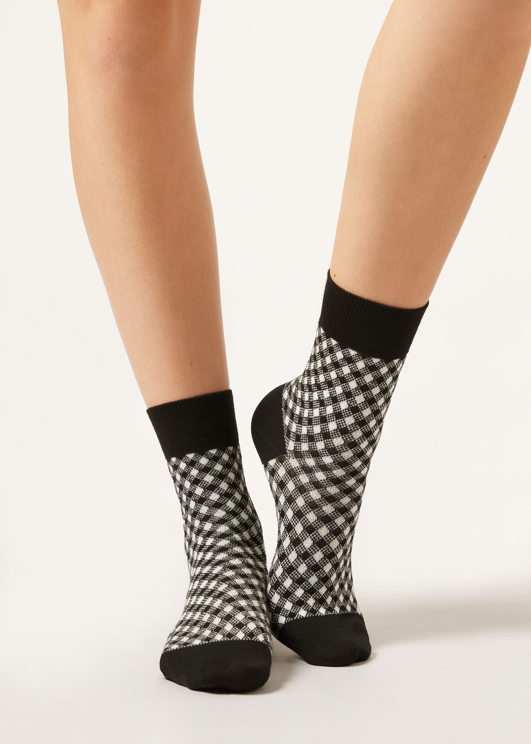 Women’s patterned cotton short socks with a wide cuff, perfect to add an original and neat touch to your look. Soft and breathable, they offer long-lasting comfort and a comfortable fit thanks to the wide cuff.