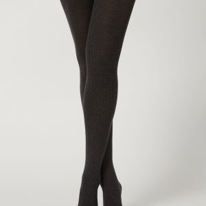 Women’s ribbed cashmere blend tights, warm and cozy. Cotton gusset.