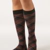 Sheer Diamond Pattern Knee High Socks