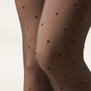 Women’s sheer effect thermal tights with an exclusive combination comprised of: a pair of nude colored opaque tights with an internal thermal texture that offers cozy warmth and an invisible gusset for optimal comfort, and a pair of black dotted 30 denier sheer stockings to layer and add a touch of sophistication.
