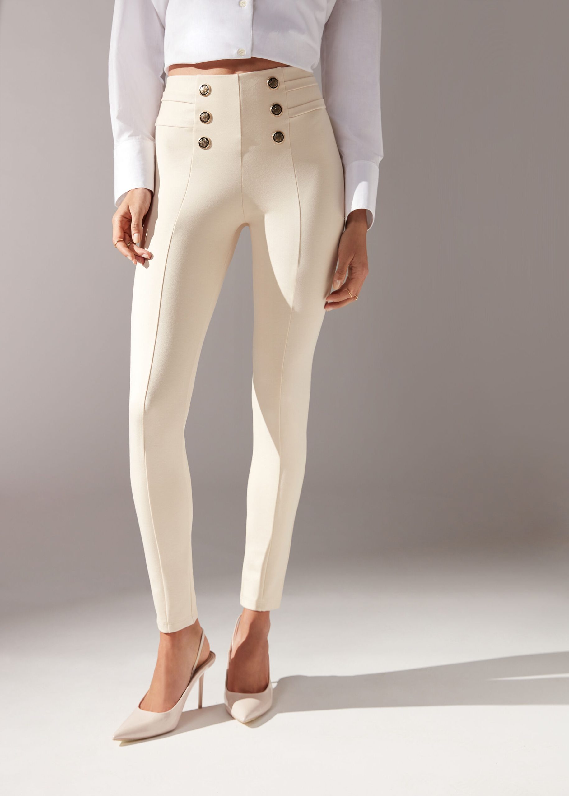 Skinny leggings inspired by the classic sailor design, made in dense shaping fabric, these shaping leggings hug your curves with comfort and style. The decorative gold buttons add a touch of refinement, while the central seam and waistband detail provide structure and define the piece.