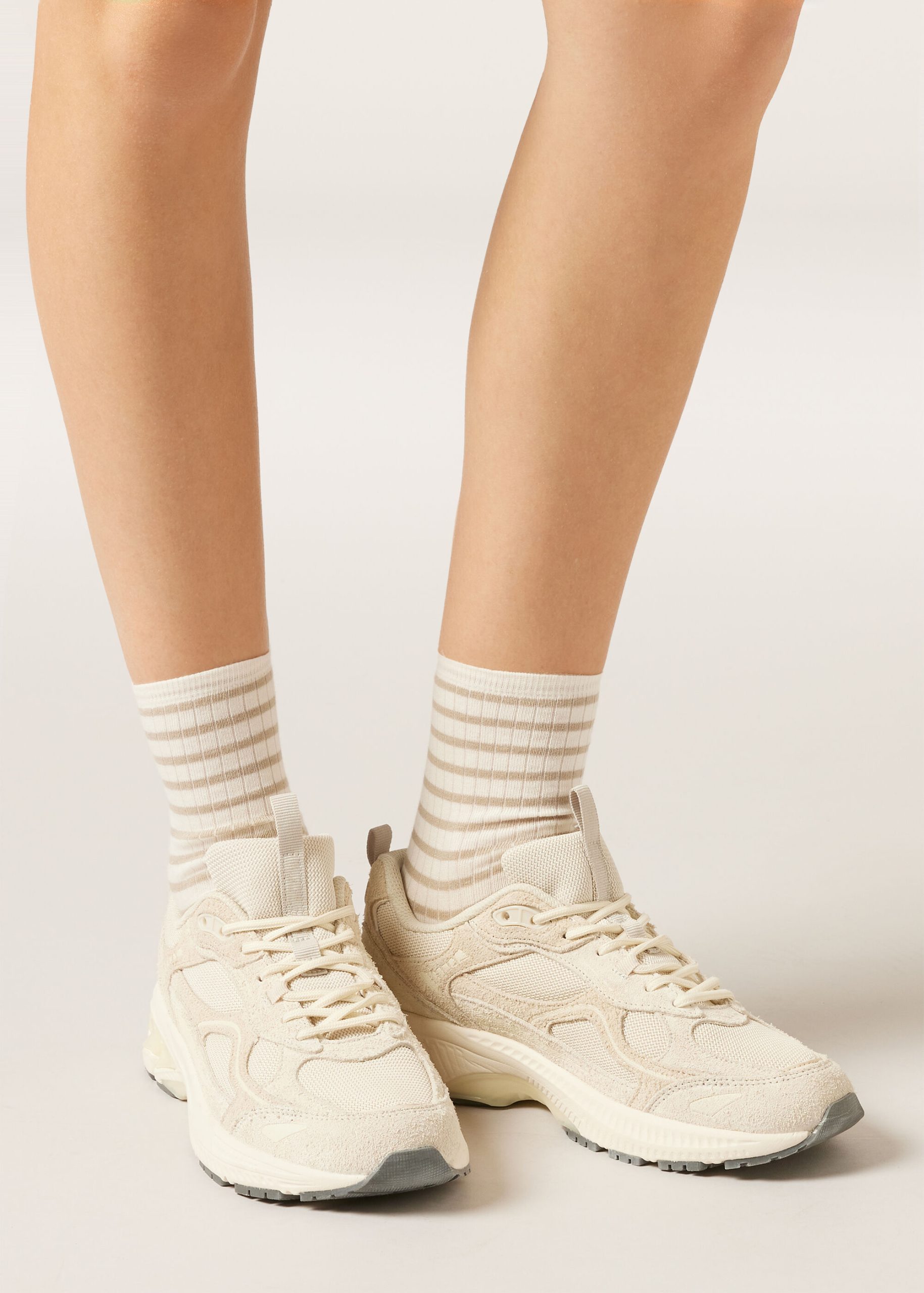 Women’s short socks in ribbed soft cotton, they offer style and comfort. The striped pattern adds a classic and versatile touch. Ideal for those looking for quality and a timeless look.