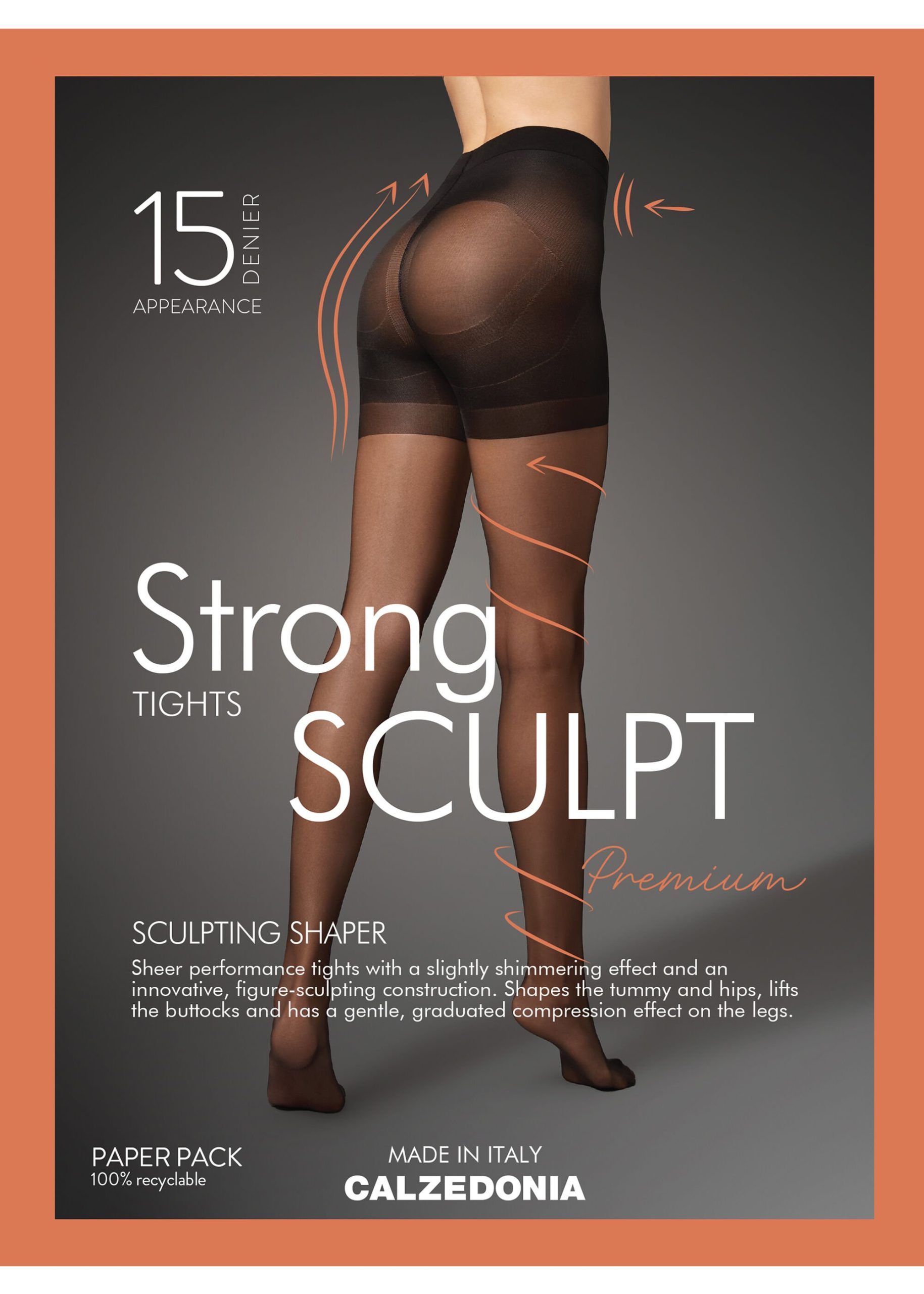 Strong sculpt 15 denier sheer tights are a elegant combination of style and performance, conceived for those wanting a distinct shaping effect. Thanks to the medium graduated compression, these tights improve circulation and give a sense of lightness and support along the entire leg. The shaping line is expertly designed to sculpt the silhouette, with a focus on the belly, hips, and buttocks thanks to an innovative fabric and a construction that guarantees a total shaper effect. Featuring invisible stitching, flat seams, and a comfortable cotton gusset, they combine practicality and comfort, making them ideal for any occasion.
