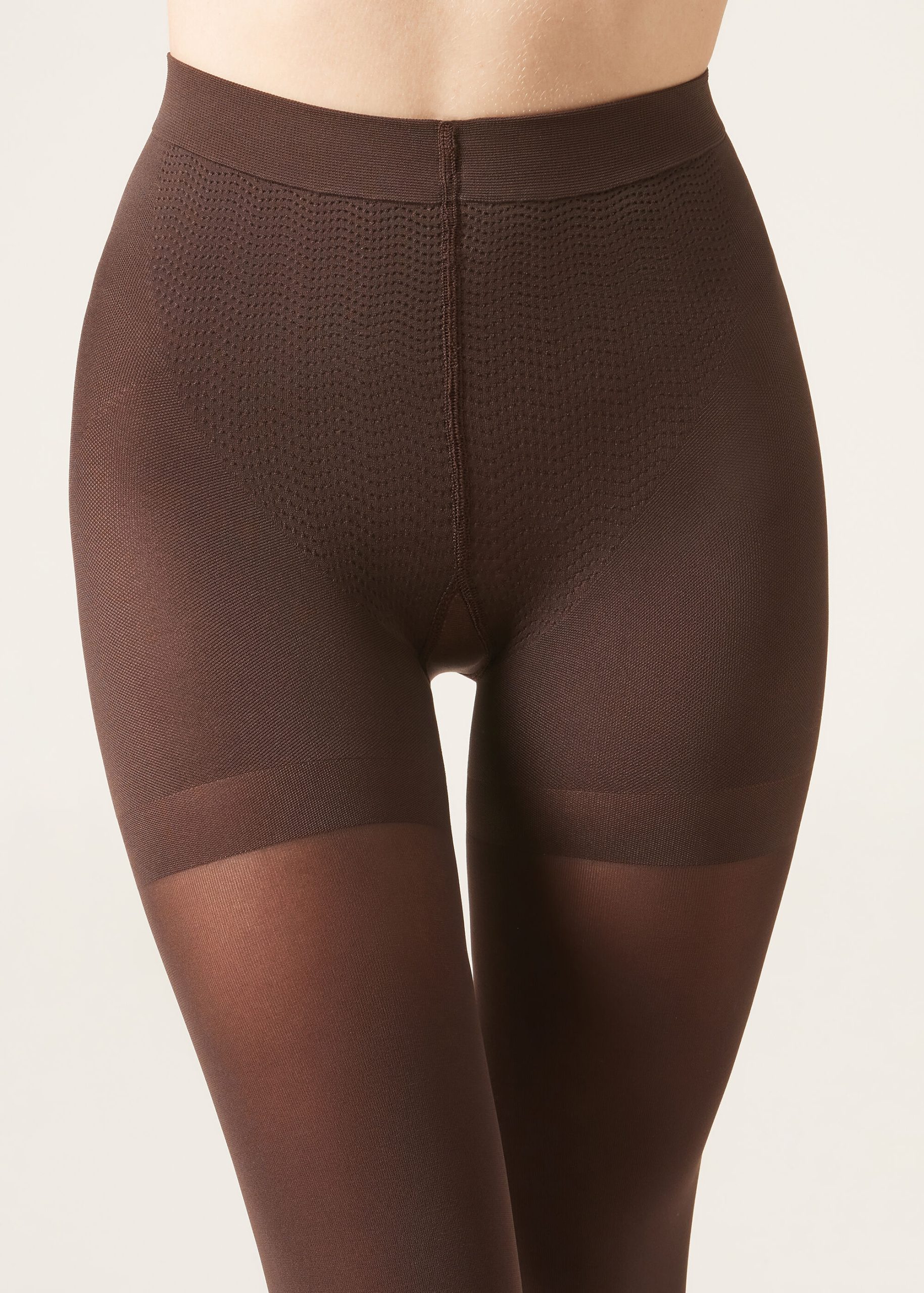 Strong sculpt 50 denier semi-opaque tights are a elegant combination of style and performance, conceived for those wanting a distinct shaping effect. Thanks to the medium graduated compression, these tights improve circulation and offer a sense of lightness and support along the entire leg. The shaping line is expertly designed to sculpt the silhouette, with a focus on the belly, hips, and buttocks thanks to an innovative fabric and a construction that guarantees a total shaper effect. Featuring invisible stitching, flat seams, and a comfortable cotton gusset, they combine practicality and comfort, making them ideal for any occasion.