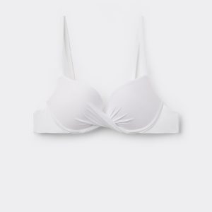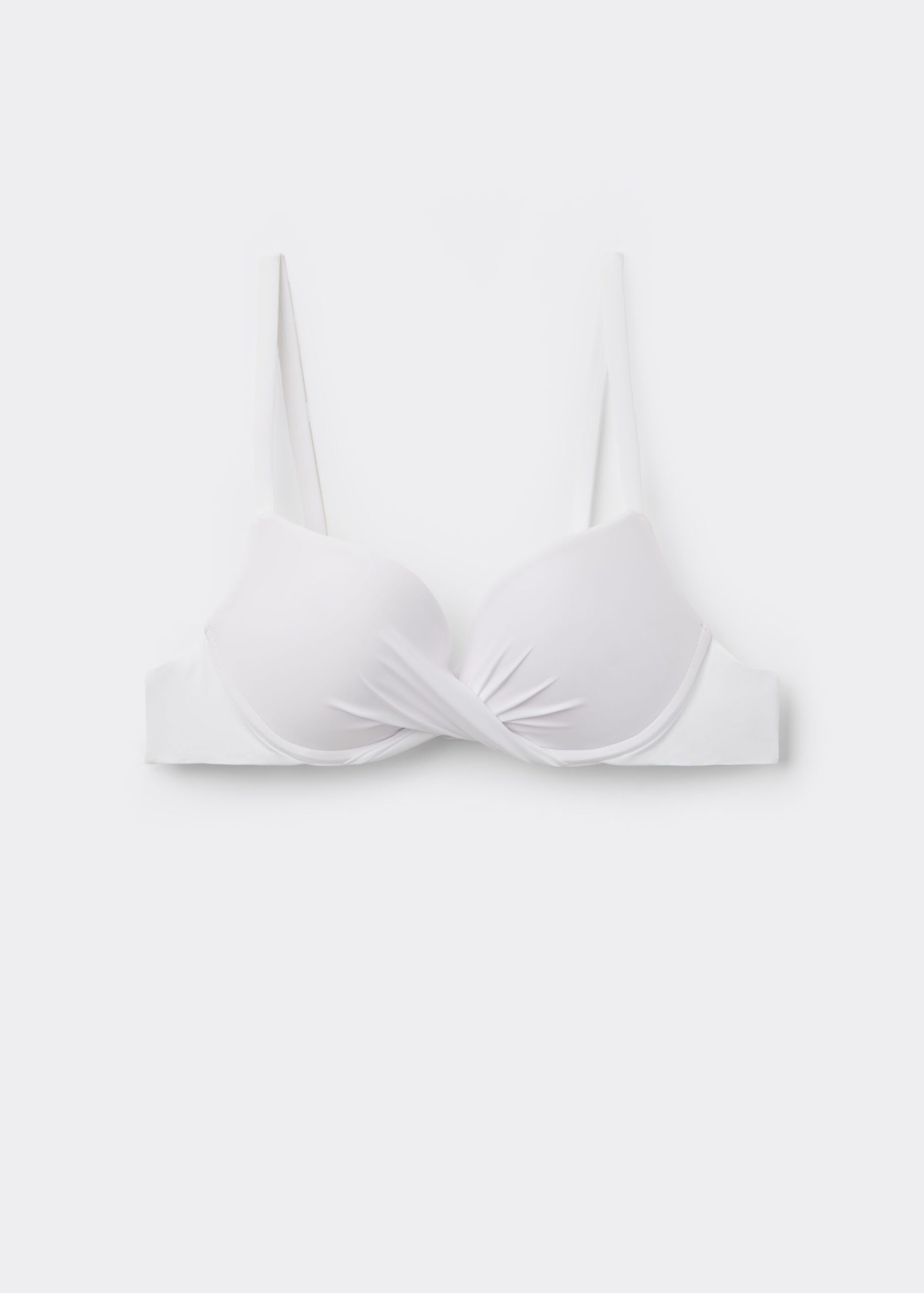 Achieve a stunning silhouette with our lifting bikini top, designed for ultimate enhancement and support. This ultra push bikini top features subtle, graduated padding and underwire to create a flattering one-size-larger effect that beautifully shapes and defines the bust. The crisscross detail accentuates the low neckline and perfectly highlights your collarbones, adding a touch of elegance to the design. Made from incredibly soft fabric, this top offers a lightweight, comfortable feel for all-day wear. For a customized fit, the adjustable push-up bikini includes removable straps that can be crossed at the back or tied behind the neck to suit your preference. The hook-and-eye back closure with an adjustable band ensures a secure and tailored fit, that is comfortable to wear and easy to put on. Whether lounging poolside or enjoying a seaside getaway, this ultra lifting bikini top blends functionality with style, making it a must-have for women seeking both comfort and a sculpted look.