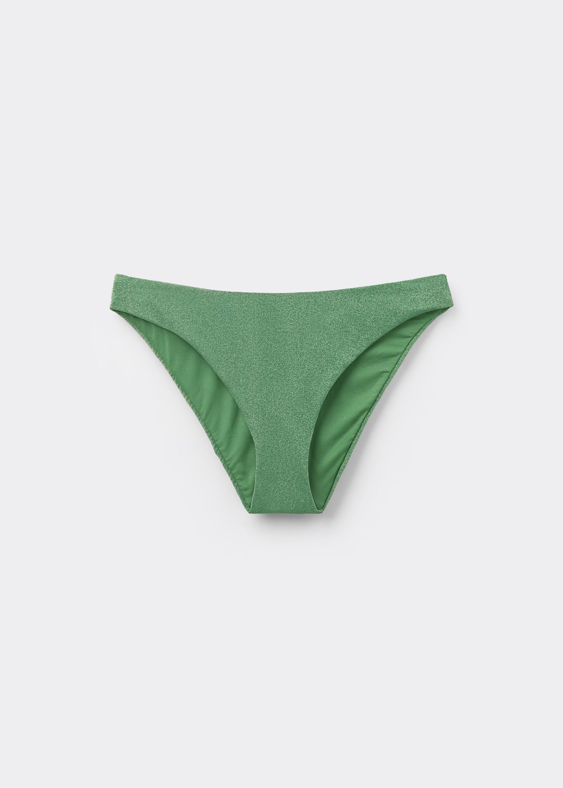 Fully lined bikini bottoms. The slightly rounded waist at the front allows for both a classic or more high-cut fit, depending on one’s physique. Soft fabric with shiny lamé thread.
