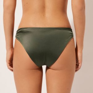 Fully lined bikini bottoms with invisible seams. The style features a bright fabric with a silky effect. The slightly rounded waist at the front allows for both a classic or more high-cut fit, depending on one’s physique.