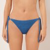 Wireless single strap bikini top with light padding that softly shapes the bust. The 3D crinkled fabric, enriched by a braided string, provides a touch of sophisticated elegance. The side boning ensures excellent support, while the string tie fastening at the back completes the design for this distinctive, modern and feminine summer look.