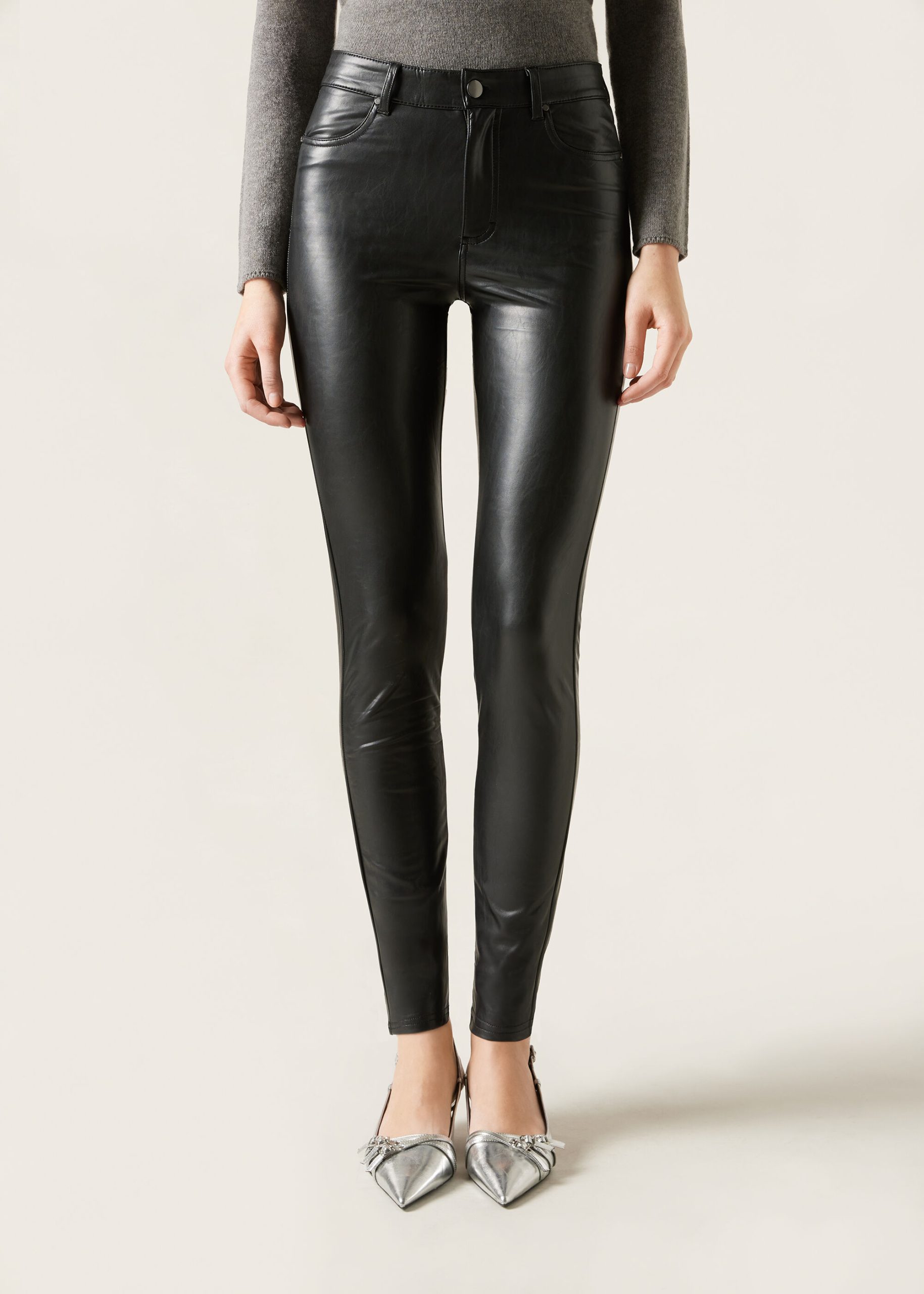 Thermal leather-effect pants