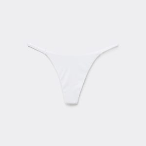 Thong bikini bottom with adjustable thin sides. The slightly rounded front allows for wearing it either as normal or with the legs higher on the sides to show off the physique. The extremely soft fabric makes it pleasant to wear, offering a light and comfortable feel on the skin. Fully lined with invisible seams.