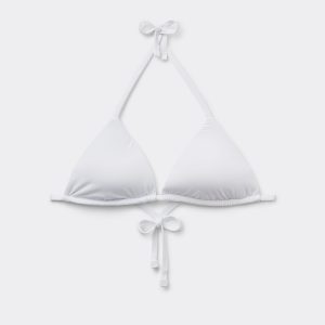 Slide triangle bikini top with removable padding, wireless for a natural effect. The extremely soft fabric makes it pleasant to wear, offering a light and comfortable feel on the skin. The shoulder straps have eyelets on the ends so they can be hooked onto the back band or tied behind the neck. Back string tie closure.